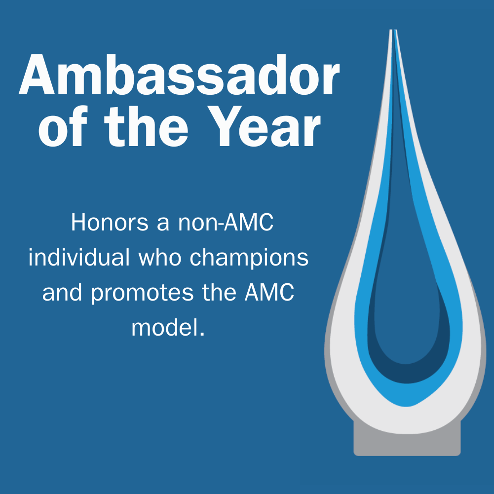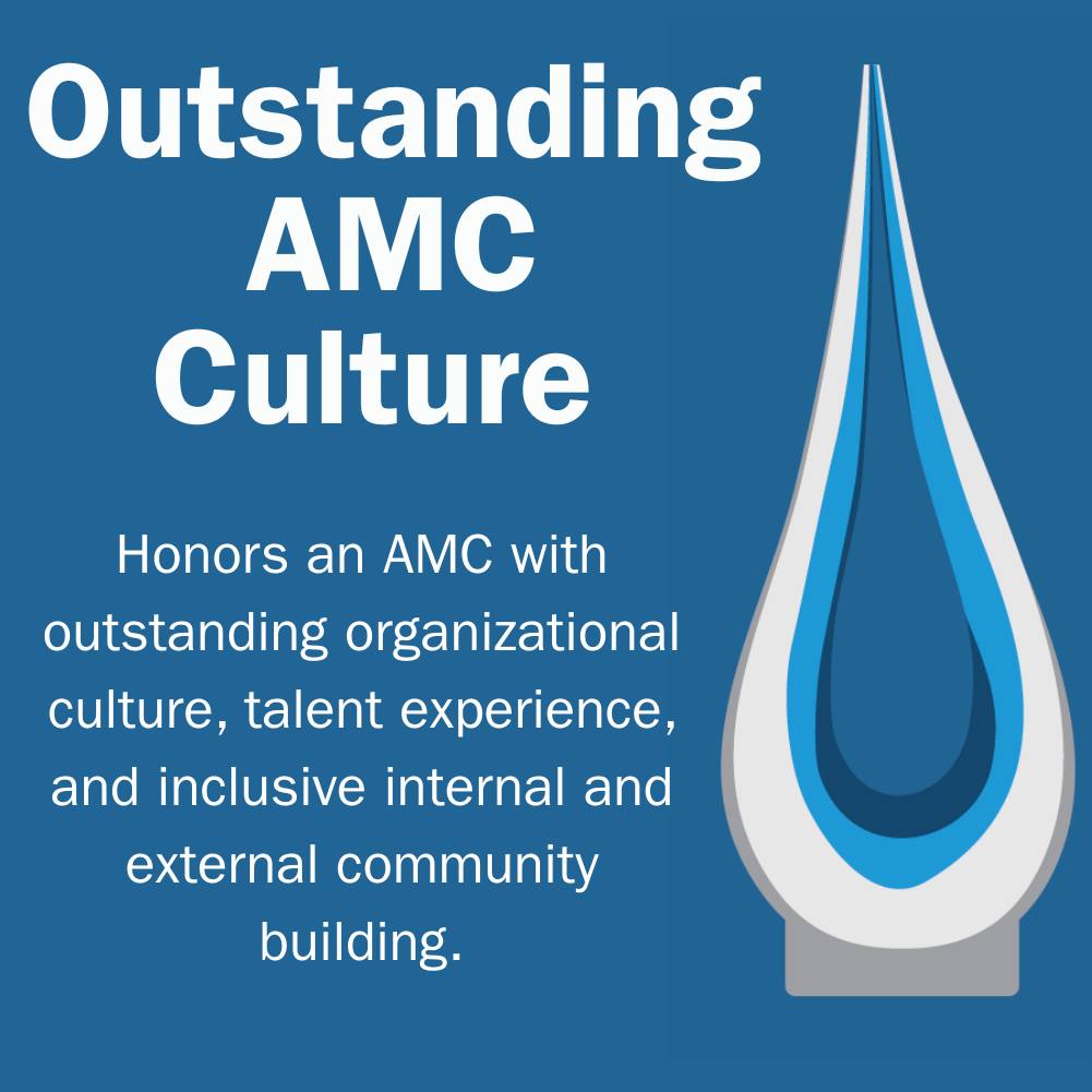 Awards of Excellence InformationLaunched in 2023, AMCI’s Awards of Excellence program honors the outstanding achievements of AMC firms and professionals who are shaping the future of our industry. Held every other year, the awards process recognizes the talent, vision, and dedication that define our members—from rising executives making an early impact, to seasoned leaders driving innovation and growth, to firms transforming client success through exceptional service. The program culminates in a celebration of the awardees, hosted in conjunction with AMCI’s AMCs Engaged meeting, where the community gathers to honor excellence and inspire continued advancement. Award of Excellence Categories and Past HonoreesIndividual AwardsClick on the Award to Nominate